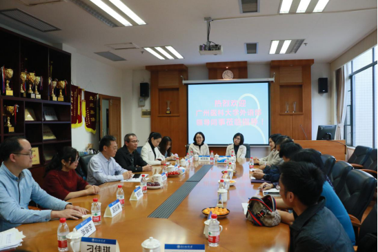 11月30日下午,广州医科大学外语部主任辛铜川、办公室主任王宇、应用语言学中心主任张平创、对外汉语教研室副主任张迎等一行十人来访线路检测中心交流。js3333线路检测中心院长董金伟、党委书记杨敏生,形评小组成员吕剑涛、张骏宇、曹丽红等老师以及办公室主任陈英参加交流。