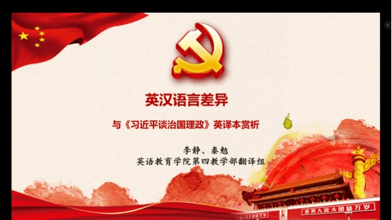 为提高学生思想政治素养和英语翻译水平,3月31日下午,js3333线路检测中心第四教学部翻译组李静、秦勉两位老师通过腾讯会议平台,在线上联合主讲了“英汉语言差异与《习近平谈治国理政》英译本赏析”主题讲座,学院2020、2021级师范系全体同学参加了本次活动。