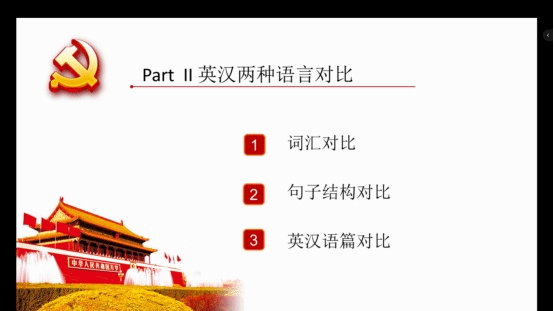 李静向同学们介绍了《习近平谈治国理政》的原著、英译版以及翻译团队。她指出,《习近平谈治国理政》是海内外读者读懂习近平新时代中国特色社会主义思想、读懂中国共产党、读懂中国的权威读本,而英译版则是世界了解中国的窗口,中国与世界交流的平台,所以提高英语翻译水平,站在全球角度讲国际化语言非常重要。将原著转换为英译本并不简单,为忠实传达原著原意,高素质的翻译队伍在“中国专家翻译、外国专家润色、中国专家定稿”的合作模式下,经过严格的翻译流程最终顺利将《习近平谈治国理政》原著转换为英译版。她将英汉两种语言进行多方面对比,让学生们更深入地了解英汉语言差异。在进行英汉语篇对比时,她指出英译要有篇章意识,要站在全篇的角度上,通过调整句式等方式重建文章脉络,精准传达原意。