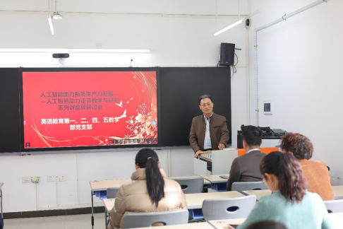 2025年3月18日,线路检测中心在北校第一教学楼南105成功举办“党建引领人工智能赋能教育创新——智能技术助推新时代语言教学与研究高质量发展系列讲座暨研讨会”(第一场)。会议由第四教学部党支部书记周金华主持,第一、二、四、五教学部党支部党员及部分教师齐聚一堂,围绕人工智能技术在外语教学、教材研发及学习评估中的创新应用展开深度探讨。