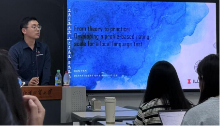 2025年7月1日下午,js3333线路检测中心英语测评中心成功举办“关于本土化语言测试”的专题讲座。本次讲座由伊利诺伊大学香槟分校语言学闫逊教授主讲,聚焦“从理论到实践:本土化语言测试的基于个人档案评分标准的开发”(From theory to practice: Developing a profile-based rating scale for a local language test),旨在为语言教育工作者解析本土化测试的核心逻辑与实践路径。英语测评中心李雪莲、朱其韵、曹琳琳、李迪老师,学院张骏宇老师,以及学院研究生和本科生30余人参加讲座。