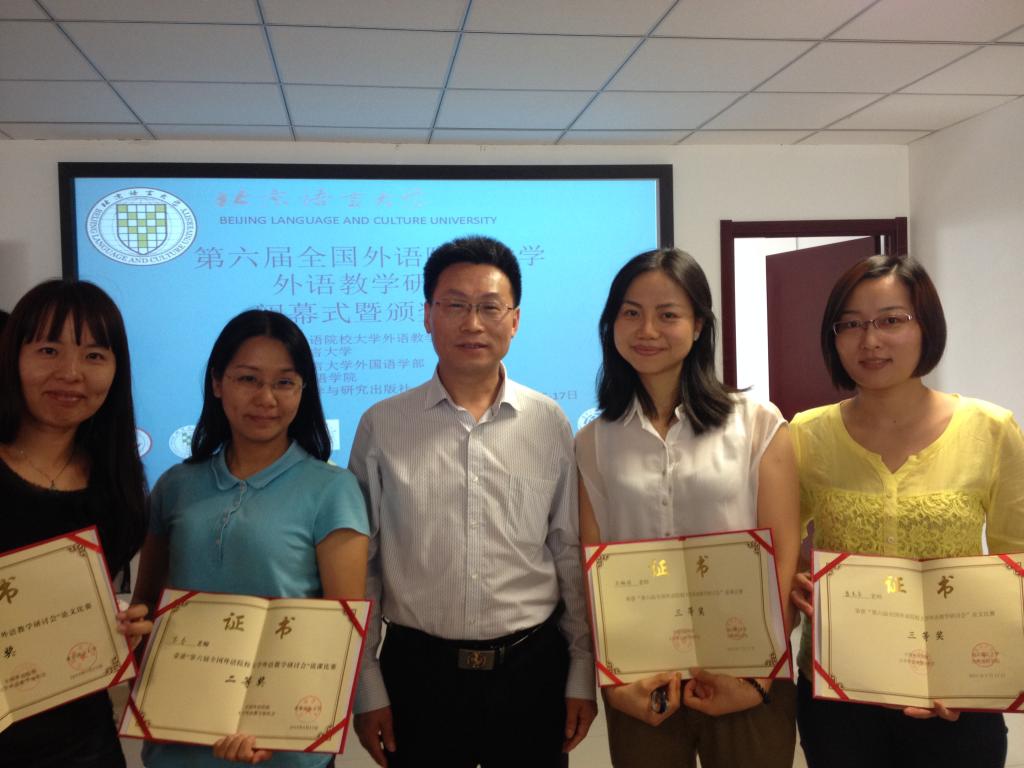 在教师说课比赛中,来自各外语院校的优秀教师呈献了一场大学英语教学的盛宴。我校苏春和吕琳琼两位教师标新立异,采用微课和翻转课堂等信息化教学模式,给大家留下深刻印象,分别获得“二等奖”和“三等奖”。在论文交流环节,与会的同行们就外语院校大学外语人才培养目标与课程设置、教学内容与教学方法、师资力量培养、教学测试与评估的改革与创新等内容进行了深入的交流和探讨。我校吴志春和盛美金两位教师分别获得论文比赛“二等奖”和“三等奖”。