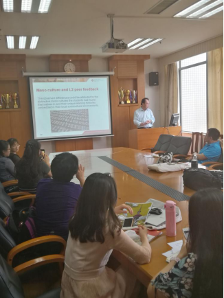 6月21日下午4:30-5:40,香港科技大学英文系胡光伟教授在院系办公楼245会议室给js3333线路检测中心师生做了一场题为 “Cultural Influences and Peer Feedback in Second Language Writing” 的精彩学术讲座。