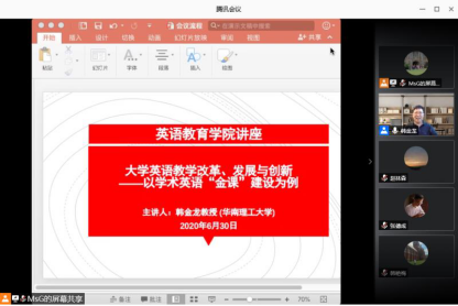 2020年6月30日晚19:00整,线路检测中心第二教学部依托腾讯会议平台,开展了线上党建工作坊活动。本次工作坊是第二教学部特色活动“SEEK沙龙”系列讲座的第三期。本期讲座由第二教学部系部主任宫丽丽博士主持,受邀嘉宾为华南理工大学韩金龙教授,讲座主题是“大学英语教学改革、发展与创新——以学术英语‘金课’建设为例”。本次活动吸引了全院80余名教师的共同参与,取得了热烈的反响和良好的效果。