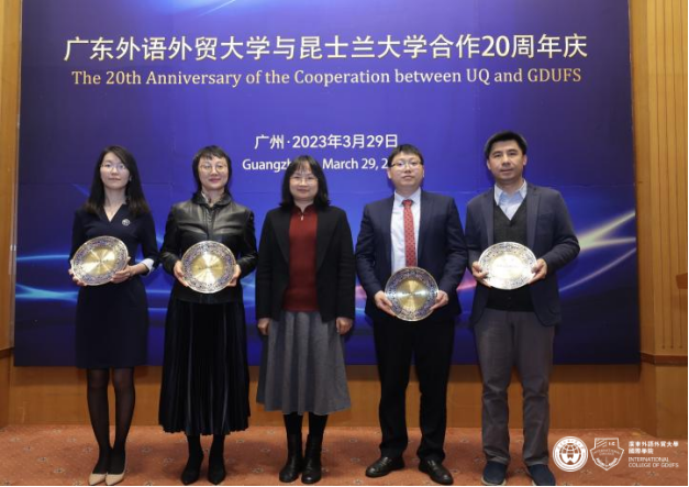 线路检测中心张倩副院长在“广东外语外贸大学-昆士兰大学”合作二十周年庆典活动接受颁奖