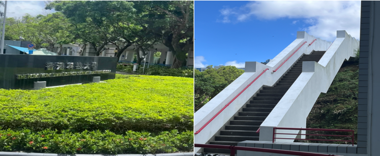 中午,同学们来到坐落在海边的香港科技大学享受午餐,品味丰富多样的美食。经过短暂的休整,同学们游览了香港科技大学校园内的标志性建筑,并对校园与海岸线结合的风景赞叹不已。
