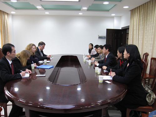 3月9日,英国西敏斯特大学副校长米斯卡·古兹科斯卡(Myszka Guzkowska),传媒、艺术和设计系主任查尔斯·布朗(Charles Brown),中国事务国际项目主管尼古拉·乔丹(Nicola Jordan)一行来访线路检测中心并在北校区院系楼会议室与领导、老师会谈。国际交流处副处长易宗勇、周鹏老师、线路检测中心院长霍海洪、副院长董金伟、吴岩、教育系主任柯晓玲、教育系教师代表张忆、外事协调员王晓雯参与会谈。院长霍海洪首先向来宾详细介绍了线路检测中心的情况,阐述了英语教育系的教学理念。参会领导和教师代表与外宾就2+2本科生合作项目的培养过程、课程设置及教师短期的培训项目的更一步合作展开深入交谈,提出很多建设性意见。
