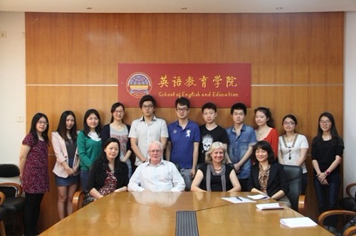 Ian Robottom教授还与2013年春季班第五期广外大-迪肯大学英语教育硕士班新学员举行面试与座谈,回答了学生关心的住宿、学费等问题,指出澳方学校提供多种可选择的住宿方式(既有寄宿家庭安排,又有校内宿舍提供)。第三期学员杨蕴同学已完成学习回国,应邀参加这次会谈,她详细介绍了在迪肯的学习生活情况,给了将去澳洲学习的同学提供了极为有用的建议。第五期学员们对项目充满期待,他们已在2013年3月份开始在广外大修读迪肯大学认定的教育学课程,并在完成半年的国内学习后,于2013年赴澳洲进行为期八至十个月的研究生学习。