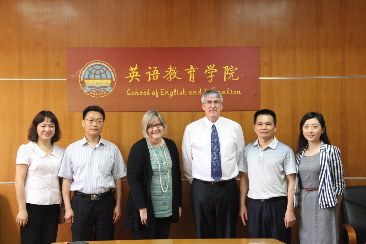 5月12日下午,线路检测中心院长董金伟、党委书记林绍雄和副院长吴岩在南校245会议室,与乔治福克斯大学教育学院领导Marc Shelton和Carol Brazo两位教授举行了会谈,共同商讨合作事宜,吴岩副院长主持会议。