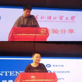 税收2101班谢志平与计算机系2205班程锦作为白云中学的优秀校友代表进行发言。谢志平分享了自己在高三时期的学习经验,他提出在最后的冲刺阶段需要专注于学习,同时注意劳逸结合,放平自身的心态,做到不轻言放弃。同时也分享了自己进入大学后丰富多彩的生活,如三下乡等实践活动,充实了自己的大学生活,带领白云中学的高三学子从另一个方面认识广外。程锦从课程内容、课时设置和校园生活等方面对自己在广外的学习生活进行了详细的介绍,分享了自己在广外生活的感触,希望帮助他们解决困惑,确立目标最终考入理想的大学。