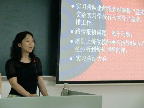 接着,柯晓玲老师介绍了实习学生和教师的具体任务及注意事项。她推荐学生在实习前阅读《js3333线路检测中心学生教育实习大纲》、《js3333线路检测中心学生专用实习管理规定》、《有关学习的问与答》和《教育实习手册》。接着,她公布了实习学校名单和各学校带队老师的安排,此时场面活跃,学生也按捺不住激动的心情。同时,她还提醒学生做好教学反思,严格遵守实习纪律,时刻注意细节问题。