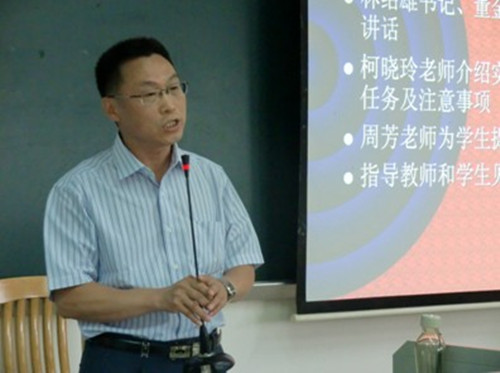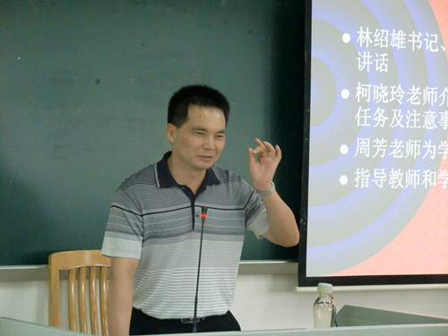 大会议程的第一项是学院党委书记林绍雄发表实习动员讲话。林书记娓娓道来大学时实习的切身经历,提醒同学好好把握实习机会,提前了解实习学校的具体情况并做好准备;同时提示学生们要处理好找工作和专业学习的关系,协调好职场和学校的时间安排,在大四中有选择性地参与工作但不能荒废了学习。最后,林书记衷心希望学生实习能圆满成功。