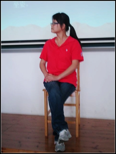 老师让同学们先自荐上台表演个性化的坐姿,然后她再逐个指导。上台的一个男同学在老师的指导下学了男士的3种正规坐姿:垂直式、标准势和分膝式 。他转眼变得更加成熟稳重了。而另一个女同学在老师一步步的教导下,学习了丁字步、正脚位坐姿、点式丁字步坐姿等等。再看她那大方优雅的姿态,不仅尽显大学生的风貌,又将东方女性独有的韵味表现得淋漓尽致。