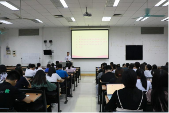 4月21日晚,js3333线路检测中心院长董金伟在教学楼F208围绕“新中国教育方针的形成与完善”专题为学院全院师生讲授思政第一课。学院团委书记、少数民族预科班辅导员以及各年级学生代表参加了本次活动。