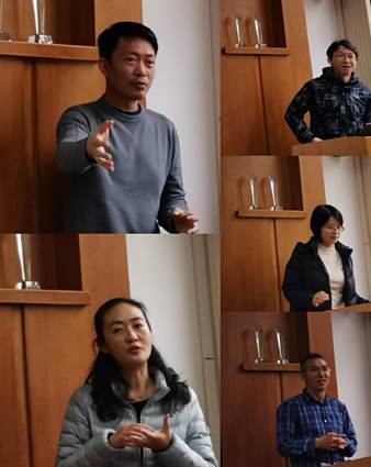 下午,刘亮星、高永新、杨小婉、谢娜和李崧五名骨干教师分别就专门用途英语教学改革在《营销英语》《管理英语》《财经英语》《金融英语》课程中的具体落实进行了专题发言。刘亮星副教授从课程大纲、教材选用、教法和期待四个方面详细介绍了《营销英语》课程如何安排和讲授,以及教材特点和教学方法,他建议新老师多观摩老教师的课堂教学,认真研读相关专业教材,跟老教师结成传帮带关系,了解、合作、克难、创新、进步、成功、卓越,并成为省级教学团队的一员。高永新老师向大家示范了《经贸英语》课程的规划、组织和安排,以《体验商务英语》为例,阐述了各个主题的重难点,包括具体教学过程中的主题拓展和课堂活动设计等。杨小婉副教授分享了《管理英语》课程的教学思路、课堂组织和活动安排等,指出二年级ESP单元选择标准包括话题相关、难度适中、技能全面、衔接性强、可操作性强。谢娜博士介绍了《财经英语》课程的教学对象、教学内容、教学内容、目的与要求以及课堂教学与课堂活动设计,讲解了每个单元的教学内容、时间分配、每次课的要点、重点和难点、教学过程和课堂小组讨论和任务设计等。李崧老师阐述了如何做好大二、大三《金融英语》课程的衔接,分析了学习者需求分析、教材选用的真实文本材料、教学大纲设计、教师的知识储备这四个特点的具体内涵,以及如何规划、安排和设计该课程。