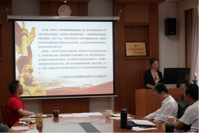 在党支部书记工作例会上,林绍雄传达了学校组织工作会议精神,分析了当前面临的新形势新要求,强调党支部政治功能提升的重要性,对党支部在筑牢政治根基、严肃政治生活、加强政治把关、严明政治纪律四个方面的重点工作做出指示要求,并布置了学院党建工作坊和庆祝建党101周年相关活动。他强调全体党支部书记要提高政治站位,提升政治觉悟和政治能力,强化“标杆”意识,严格自我要求,既要高标准推动具体工作,也要带头遵守规矩纪律,发挥好先锋模范作用,以优质党建工作引领学院事业高质量发展,以优异成绩迎接党的二十大胜利召开。
