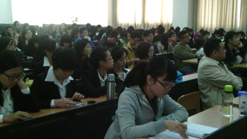 接着,冯益谦教授就学习党的十八届三中全会精神的体会作了题为“凝聚改革共识,投身改革洪流”的报告。主要阐述了党的十八届三中全会的重大意义并着重解释了“全面深化改革“的含义与总目标。他说:”十八届三中全会的重大意义对当代中国来说无异于当年遵义会议的重要性,全面深化改革的提出将给我党我国的发展注入全新的血液。”