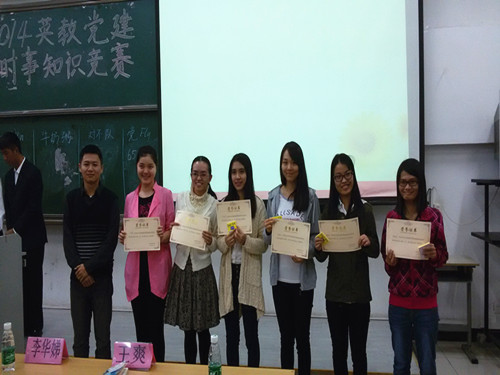 “学党情、知党史、跟党走”2014党建时事知识竞赛经过初赛和决赛两轮角逐,终于降下了帷幕。本活动旨在促进同学们进一步学习党务知识,积极向党组织靠拢,宣扬党的精神,增进对党的历史、党的成就、党的理论、党的路线方针政策和党的知识的了解与认识,提高同学们的思想觉悟。