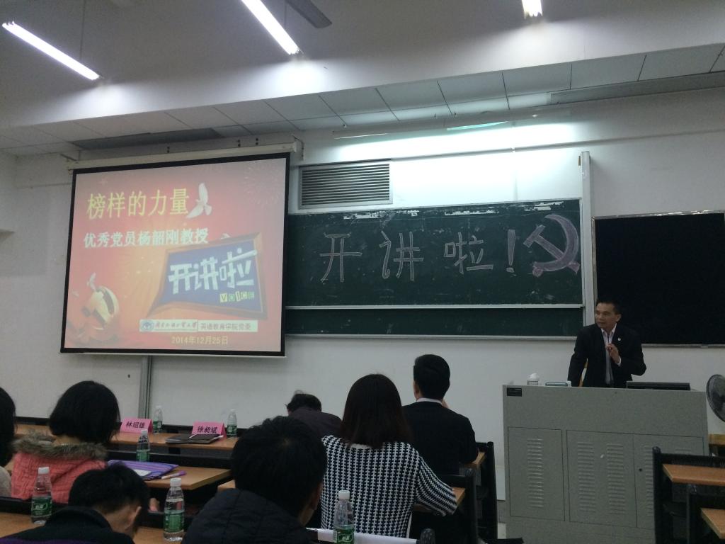 林书记对杨教授的开讲进行了简要的总结。他指出:作为学界的杰出代表,杨韶刚教授潜心治学、孜孜不倦;作为共产党员,他爱党爱国,服务人民;广大师生要学习杨教授的奋斗精神和务实的品格,让优秀成为一种习惯,同时要在这个喧嚣的时代静下心来,在研究学问中享受快乐、在奉献中体现价值,更为重要的是要用共产党员的信念支撑自己,在迷茫中找到方向,争取做一名响当当的共产党人。
