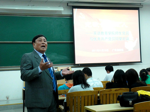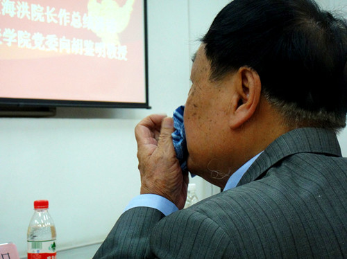 87岁的胡教授在演讲台前活力四射,精神矍铄,以其人生经历做引娓娓道出今日报告会主题。报告期间,胡教授以作为党员教师要本着“一方面要牢记党教导我如何做人,另一方面我也要用党的思想教育我的学生如何做人”的信念,结合他充满崎岖之路,颠簸之道的人生向在场的师生叙说党对他的影响。无论是在那艰难困苦的岁月里,还是如今休闲静谧的时光下,他都不曾停止手中的工作,笔耕不辍。胡教授奉献了一生,但这位老人笑谈“我依然年轻,我依然九零后”;胡教授辛勤了一辈子,但这位老人放言“只要我还有力气,我就会一直做下去。”这一生他时刻谨记党的教导,谦虚谨慎、戒骄戒躁做人。胡教授从其如何在约三十年前加入中国共产党讲到如今他以优秀共产党员的身份,站在演讲台上讲述自己对党的信念,语言朴实无华,句句肺腑之言,在场的师生无不为他的那一份坚毅和真诚所深深打动。报告会期间,一次又一次自发的掌声响起,经久不息。