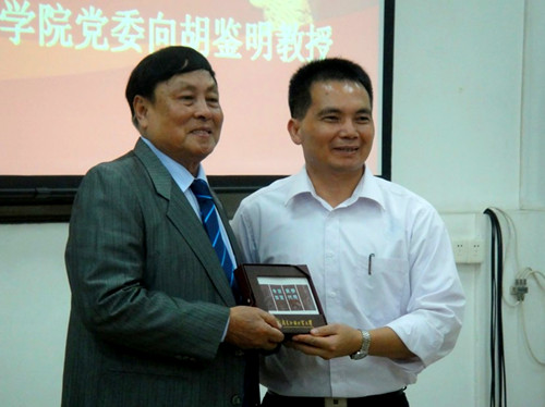 活动结束前,林绍雄书记代表学院党委向胡鉴明教授赠送纪念品。