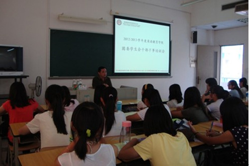 本次会议由何伟儒副书记主讲,何副书记首先以近期钓鱼岛事件为例,强调学生干部和干事们应理性爱国,培养良好政治素质,养成独立思考、理性分析的习惯;其次,要提高工作的协调组织能力,充分权衡各方利益,集思广益,从而增强英教的整体凝聚力;此外,更要设定好自身角色,一个学生干部,不仅要起到承上启下的作用,保证老师与同学们之间能够进行良好的沟通,更要发挥带头作用,给同学们树立一个良好的榜样。