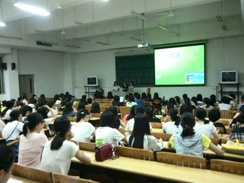 学院团学副主席陈勉如首先发表开场白,对今晚来到课室聆听宣讲会的同学们表示欢迎,接着对团学的组织架构进行了简单介绍。团学现有外联部、实践部、就业服务部、新闻部、组织部、学术部、生活部、秘书部、文娱部、宣传部和体育部,共11个部门,另外学院还设有英教自强分社和党建小组。接着团学各个部门带来了精彩的部门展示。精美PPT的展示、多彩视频的制作、部门合唱……2014级的同学们在每个部门的精彩展示结束时都带来响亮的掌声。外联部是第一个进行展示的部门,两位部长用轻松搞笑话语介绍了外联部的工作和特色。新闻部开始就以迎新布置、迎新当天工作真实照片为素材做成图集作为送给2014级师弟妹们的一个开场小礼物,之后通过贴切的介绍、真实的视频、累累的工作成果,与在场各位一同见证了新闻部这个新部门的茁壮成长。文娱部幽默的招新视频告诉新生,无论你是怎样地一无所知,只要有一颗热爱文娱工作的心就可以来报名。而宣传部招新的视频则向大家展示出宣传部技术性强的一面,视频拍摄和选取的素材与方式独特新颖。在部门介绍过后便是自强社和党建小组进行宣讲介绍,自强社给新生们展现出大家庭式的温暖和希望,党建小组则用他们的品牌活动给在场同学留下了深刻印象。最后团学主席余安琪宣布宣讲会圆满结束,2014级的新生们也陆续退场。