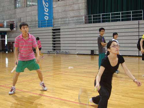 上午的团体混合赛中,线路检测中心分别与政管学院、艺术学院和公开学院进行紧张了的决斗。在与艺术学院的比赛中,线路检测中心选手们凭借自己的实力以大比分取得完胜。接下来与公开学院的竞争中更是紧扣人心,1002班的曹汉杰与1003班的王菊宇的混双组合凭借完美的默契与配合、灵活敏捷的行动与反应以21:12的出色成绩赢得比赛,振奋人心。