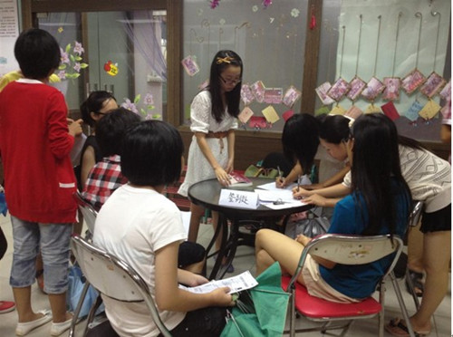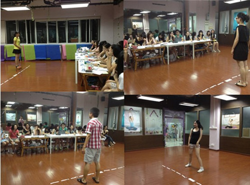 面试前,各位正副队长们已经斟酌好独特的颇具创意的面试题目,其中话剧队的创意点子最多。话剧队题目新颖,极具挑战性,如“请即场表演如果你在幽深的小巷中遇上流氓的慌张模样”、“请一边唱你的一首喜欢的儿歌,一边独自演绎儿歌中的情节”等。此类稍稍“恶作剧”的题目充分锻炼了面试者的临场发挥能力和情景联想能力,同时他们出色的演技总能博得在场的各位团长队长的开怀一笑。