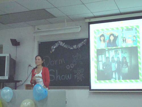 比赛一开始, 6-304 “舒芳斋”搞怪的《还珠格格》方言配音便点燃了现场的气氛;接着5-320的3LFamily又掀起另一波高潮,自喻为“剩女三缺一”的她们在宿舍里养着爱宠仓鼠——小丸子,尽显宿舍的温情,随着《步步惊心》潮涌起,她们更疯狂地扮演大清皇宫的角色,恶搞图片赢来观众笑声不断。喜欢“蜗居”的6-416四人统一穿上格子的服装上台,表示四人一条心,在帮帮团的支持下喊响了她们的口号“窝起来,更精彩”。五花八门的展示方式背后是同样深厚的宿舍情谊,正是这份情,让6-506四人携手走在一起,“相亲相爱,风雨同在”,让5-323作出她们会铭记一起走过的时光的承诺,让6-414宿舍幸福地相处下去。决赛舞台上那一张张美丽的笑脸和一段段欢乐的视频深深地感染了在场的评委和观众。
