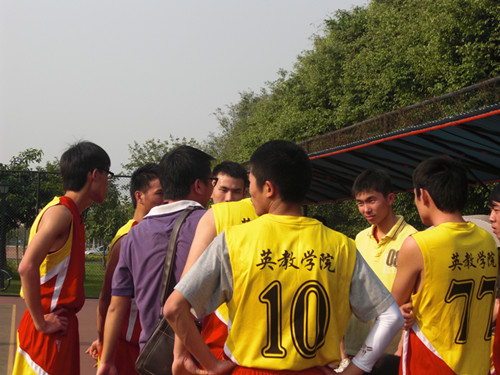 3月25日下午,我校南校区1号篮球场上热气升腾、场面紧张,两旁的看客翘首等待,英教学院VS经贸学院的小组赛即将开始。