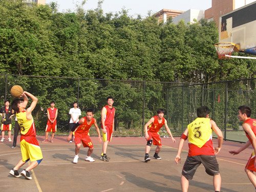 第三、四节比赛中,由于我方的体力方面略显不足,防守攻势稍逊一筹,双方比分逐渐拉大。在第四节现场气氛无比紧张之际,我方7号曹汉杰上场。他攻势独到,以更敏捷的反应力与对方竞争较量,在组员的配合下最终成功投入2分球。时间一分一秒地过去,但比分差距难以追上,我方最终以14:47落败。
