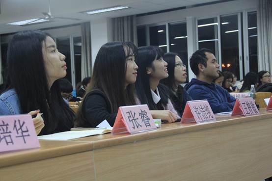 随后实践部部长冯培华、宣传部部长刘雁珊从不同的角度分享了自身的经验、教训,亦对新干事们提出了建议和要求。她们均表示希望每一个人都能珍惜在团学工作的机会,勤于学习借鉴、善于反思总结,共同为这个大家庭的建设添砖加瓦。其中,刘雁珊寄语:“欲戴皇冠,必承其重。”激励全体新干事们勇于付出、勇于承担。二人饱含深情的话语,无不体现了对团学的留恋和怀念,对新干事们的肯定和期盼。