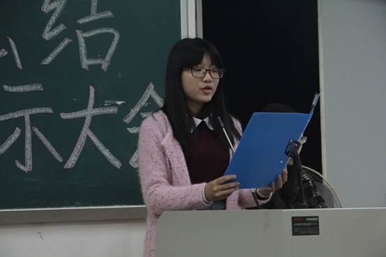 大会开始,学生会主席王梓敏总结团学整体工作情况。首先,她肯定了团委学生会本学期的辛勤付出。随后,她总结了团学本学期完成的工作,如加强团学微信公众号平台建设,举办团学培训会等等,并表达对团学未来工作的要求与期盼。
