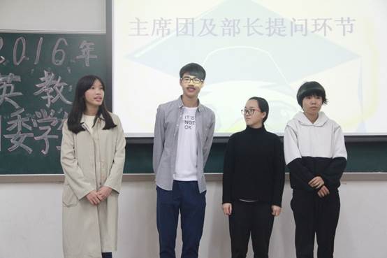 主席发言完毕后,学术部进行了部门总结展示。她们介绍了学术部本学期的负责的任务。针对不足之处她们也提出了完善的方案。在其展示完毕后,实践部进行总结展示。他们展示了本学期的部门成果,并希望下学期能够再接再厉。接下来是生活部的总结展示。她们展示了本学期在工作上的创新,比如在男生节活动中,创新地与政管学院合作,使线路检测中心学生可以接触更多学院的同学等。随后展示的组织部表示会更加努力,让组织部更好地服务英教同学们。而后展示的是宣传部,他们总结了本学期在工作上的创新,如创新地采用了不同风格的宣传海报等。当被主席团问到自己做的海报被否定后有什么想法时,他们认为应该积极听取部长的意见,努力改正自己的不足,使自己的能力得到更大的提升。