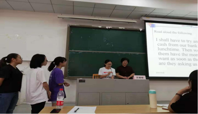 首先,王桂珍邀请了几名同学上台朗读一段小短文,并让同学们观赏了中国演员李冰冰的英语广告。她告诉同学们,现在社会对老师的要求越来越高,学英语的人也很多,她鼓励英语专业的同学发挥自己的专业优势用功学习。同时,王桂珍指出,北外、上外与广外是国家级别的语言类学校,所以我们应当用国家级的要求来督促自己。