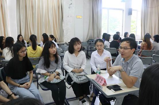2019年5月12日,js3333线路检测中心“经验漂流瓶”分享活动在教学楼G209顺利举行。线路检测中心特别邀请了英乐青少儿英语学校创始人钟惠妍,留达教育创始人黄崇本,广外附属小学英语教师喻安婷和从事海外华人寻根行业的陈尔冰四位嘉宾进行经验分享。本次活动采用小组问答讨论形式,四位嘉宾被分到了A、B、C、D四个小组,分别从自身的学习和工作经历出发,为同学们上了一节真实生动的就业课。