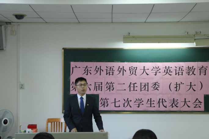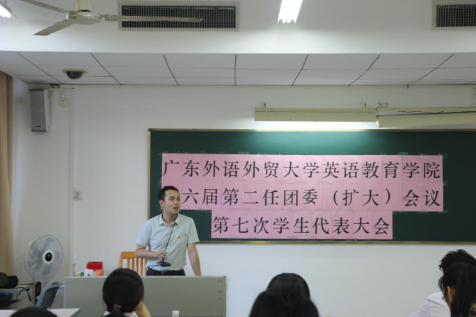 2019年6月14日晚6点,广东外语外贸大学js3333线路检测中心第六届第二任(扩大)会议、第七次学生代表大会在南校区教学楼D212举行。js3333线路检测中心团委书记林泽龙老师,校学生会副主席汤志彬出席本次大会。js3333线路检测中心第六届第二任团委、学生会委员,各位候选委员以及学生代表参与本次大会。