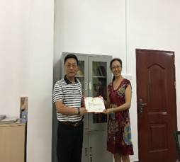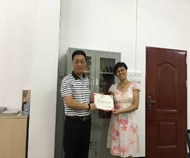 十七中唐绮红副校长接着详细地讲述了有关实习食宿问题,表达对实习生的期待,并介绍了五位指导老师:高三科组许靖华科长,李莉老师,谭桂芳老师;初二科组毛敏老师和何燕老师。然后由十七中肖主任同时阐明了校方的实习要求和相关作息制度。线路检测中心带队老师谢剑萍也表达了自己对实习学生的殷切希望,希望学生珍惜机会,向优秀的指导老师学习。最后,董金伟院长为在场几位指导老师颁发了实习聘用证书,并合影留念。