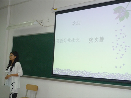 首先是英教分社社长张文静上台发言。简单的自我介绍之后,她表示对家教兼职服务队的成长有很大的期望。