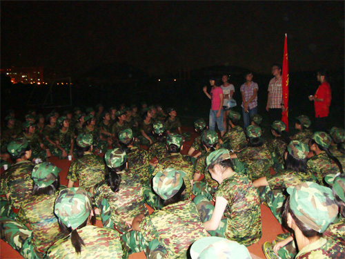 9月10日晚7点20分,英教团委学生会部分干部前往南校区假草场慰问正在进行军训的新生,受到了他们的热烈欢迎。