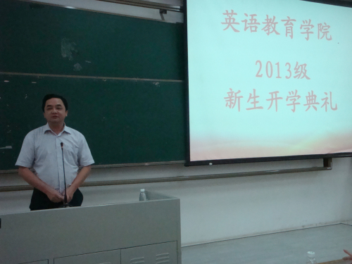 接下来,何德生老师上台,以其一贯谦虚谨慎的态度谈了认识广外、认识英教,认识教师的职业与为大学生活提建议这三点。尤其是谈到认识教师的职业时,何老师认为教师应该是一个愉快的职业,为人师表之前应该先做好一个人,还谈及做人要有激情,应积极地参加课外活动,重视外语,更应重视母语。