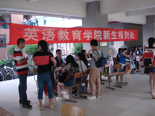 “请问师姐,英教学院在哪里报道呢?”“6栋怎么走?”“饭堂在哪里?”“哪里可以领军服?”……因为团学干部以及学院迎新志愿者们的辛勤付出,各种问题都不再是问题。有师兄师姐的地方就有面带微笑的答复。