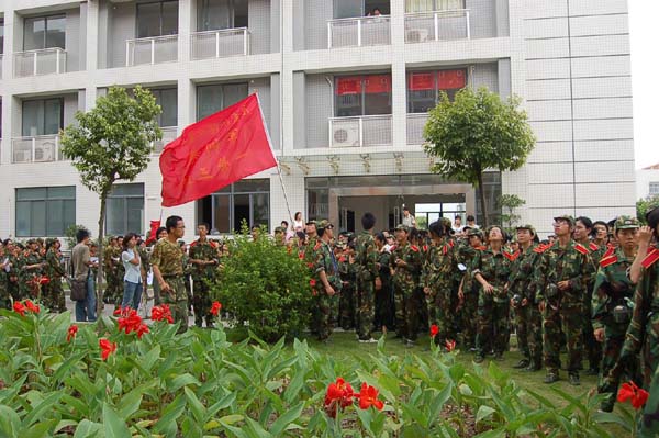 “三连,三连长,阿炳,小明,耿帅,邓恩仁,李卓明,陈炳家,耿帅”。这些名字在此起彼伏的人群中回荡,久久不息。转脸过去,发现女生们已经泪流满面,男生们情绪好激动,眼眶里还有泪水在打转,我能深切地感受到他们都在尽力强忍着此刻自己的情绪。起初站在他们中间,仿佛我只是一个看者,用我手中的相机为他们见证人生的这一重要的成长飞跃。渐渐地,我融入了他们,心情随着他们的叫喊声波动着,感动着,仿佛我也是他们其中的一员。“寒风飘飘落叶,军队是一朵绿花。亲爱的战友你不要想家,深深我日夜呼唤。多少句心里话,不要离别时两眼泪花,军营是咱温暖的家。”一句句曾经在我们嘴边唱起的歌穿动着我们在场每个人的心,一直以来,我最不愿意听到的就是这首军歌,因为里面的歌词太煽情了,每当听到这首歌,眼泪就会盈眶而出,可是此刻,我已经融入到他们之中,一直被他们感动着,泪水在打转我已不在乎。十八天,好短暂的日子。我们在茫茫人海中,机缘巧合地相遇在广外大的校园,不是因为同学与同学的关系,不是因为师生的关系,而是因为你是教官,我是学生,一切因缘而起。