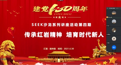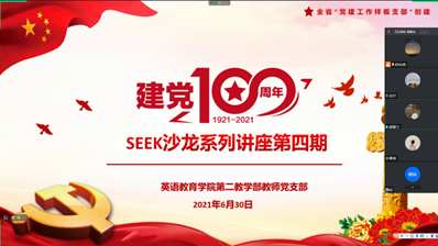 2021年6月30日下午,为庆祝中国共产党成立100周年,深入开展党史学习教育,进一步加强全省“党建工作样板支部”培育创建工作,推动党建与业务深度融合,凝心聚力推进各项工作提质增效,第二教学部党支部通过腾讯会议举办了“传承红色基因,迎接建党百年”暨党建SEEK沙龙系列讲座活动第四期。院长助理、支部书记赵林森、系部主任宫丽丽、支部党员苏春分别做了题为“传承红岩精神,培育时代新人”、“课程思政指导下专门用途英语教学反思”和“独行不惧、雪泥鸿爪——我在俄罗斯教中文”的精彩讲座。js3333线路检测中心院长董金伟、党委书记杨敏生出席,第二教学部全体教师和其他系部教师近40人参加了讲座。院长助理、第二教学部党支部书记赵林森主持讲座。