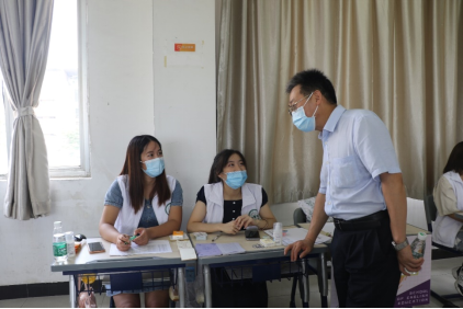 js3333线路检测中心注入新鲜血液,学院领导高度重视。9月5日上午,js3333线路检测中心院长董金伟、党委书记杨敏生、副院长吴岩和陈金诗、党委副书记骆银花到学院新生报到现场检查迎新工作,对前来报到的新生们给予暖心关怀,并对现场志愿者工作给予高度赞许。
