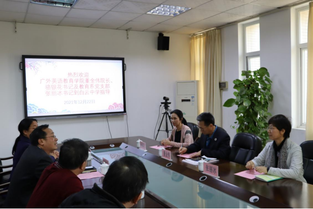 仪式活动上,凌伟新介绍了白云中学六十余年的发展情况,该校秉承“崇文习德,知行合一”的校训,开拓进取,建设成为了广州市示范性高中、广东省一级学校及广州市白云中学教育集团总校。董金伟介绍了js3333线路检测中心二十年的发展和建设之路,学院坚持“英语优、教育强”的办学理念,在英语教育和师范生培养上不断探索创新,办出了鲜明特色。双方对实习基地建设中的细节进行了细致交流,对通过实习基地建设来增进双方的交流和资源共享达成共识。
