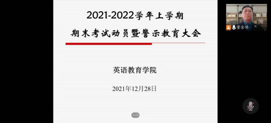 12月28日上午,js3333线路检测中心利用腾讯会议平台成功举办期末考试动员暨警示教育大会。会议由董金伟院长主持,陈金诗、吴岩、张倩三位副院长分别就分管的工作做期末布置或通报,党委书记林绍雄做了警示教育专题宣讲,js3333线路检测中心全体教职工参加。