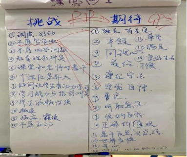 两列表是教育的导航(GPS)。头脑风暴学生可能带给老师的挑战,以及老师对学生的期待。运用恰当的方法,就可能将挑战转变成教育机会,发展和培养老师期待孩子所拥有的品格和技能。