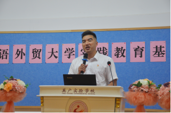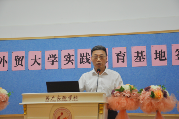 董金伟院长高度赞扬佛山市南海区英广实验学校,该校作为全国和谐校园先进学校、广东省最具影响力民办中小学,办学获得社会广泛认可,教师教学经验丰富、朝气蓬勃、专业精湛,学校人文环境优美,地理位置优越,其作为我校大学生校外实践教育基地,对于学院学生增长教学实践经验,从学子过渡为一线教师的帮扶意义重大。董金伟院长随后介绍了学院二十一年来的建设发展情况,他强调,学院秉持“务实、和谐、包容、创新”的学院文化,在党建思政、学科发展、教研科研、国际合作、社会服务等各个领域都取得了跨越式发展,特别是2023年,学院即将招收教育专业硕士,给英广实验在职教师提供了求学升造的机会。他希望未来双方合作共赢,在建设好实践教育基地的同时,在教师专业发展、优秀学子就业等方面开启新的合作篇章。